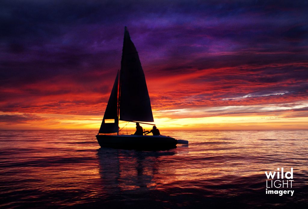 In 2011 up at our cabin on Lake Michigan we had a sailboat and I had been wanting all week to get that boat out when the sun was setting to get some cool sailboat shots. All week we had put it off because it was either not a good sunset or for some other reason. This particular night (the second to last night we were going to be there) there was basically no wind. Well, you cant very well have a sailboat sail when there is no wind. But I was able to get my father and Brother-in-law to take it out anyway So I could get my shots. He and brad ended up paddling the sailboat as it would not “sail” because as I said there was NO wind. When he agreed to take it out we did not have any idea the Sunset would be one of those perfect sunsets.